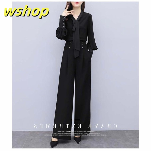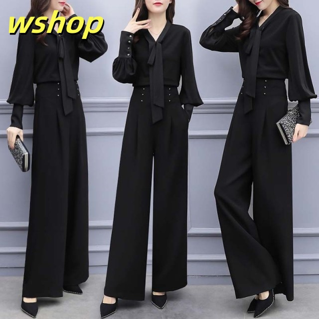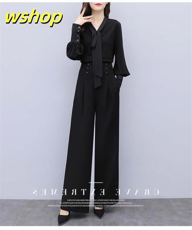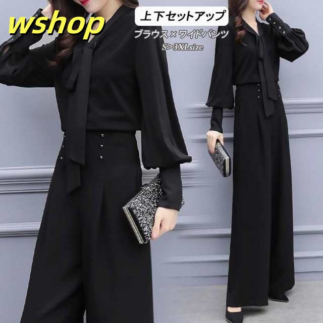 売れ筋アイテム 毎日使える便利品 40代 夏 フォーマル 】セットアップ 即納OK レディース 卒園式 ブラウス パンツスーツ SNS話題 【wshop 黒 ワイドパンツ オフィス 母親 女性 今だけ 七五三 春 バールン袖 送料無料実施中