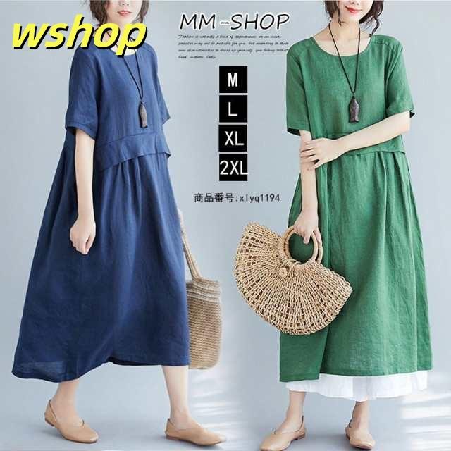レビュー高評価商品 ギフトにも最適 40代 ロングワンピ 】マキシワンピース 売上急増中 レディース 半袖 マキシ丈 ゆったり 収納便利 在庫わずか ワンピース 【wshop 体型カバー 夏 大きいサイズ 無地 リネン お買い得プライス