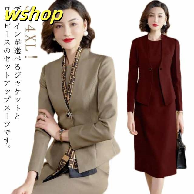 | S-4XL!デザインが選べるジャケットとワンピースのセットアップスーツです。 ジャケットは大人かっこいいVラインのカラーレスジャケットとコンパクトなシルエットでスタイルアップして見えるノーカラージャケット。 ワンピースは着脱しやすい前開き&セットアップのようなドッキングデザインと、ジャケットと共布でシンプルなラインが美しいタイプをご用意。 どちらも単品使いしやすく、お手持ちのジャケットと合わせてコーディネートも楽しめます。 | |