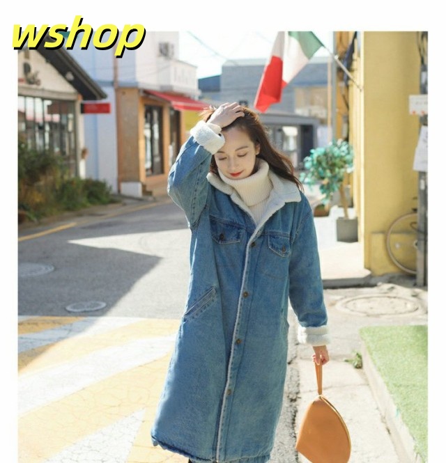 秋の新作特集 品質安心 ボアデニムジャケット オシャレ 暖かい カジュアル 秋冬 レディース シャツカラー 裏ボア 今だけ アウター 【wshop 】デニムコート 厚手 40代 上品 デニムコート ロング丈 韓国風 収納便利 SNS話題 数量限定入荷
