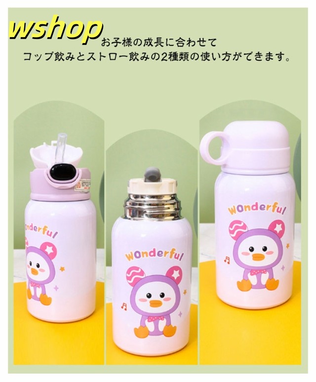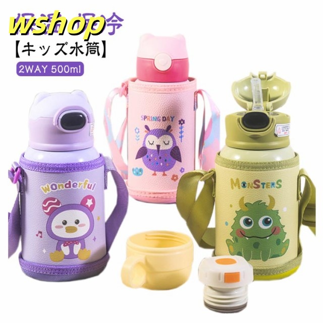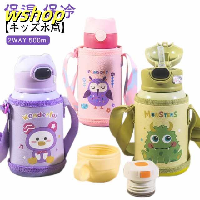 【wshop 】キッズ 子供 コップ 直飲み ストロー 水筒 ストローマグ 小学生 2way ステンレス 保冷 保温 キッズボトル 500ml 子ども 熱中症 ベビー 保育園 ストロー付き水筒 ステンレス製 こども かわいい おしゃれ 赤ちゃん 水筒 子供用 幼児 入園