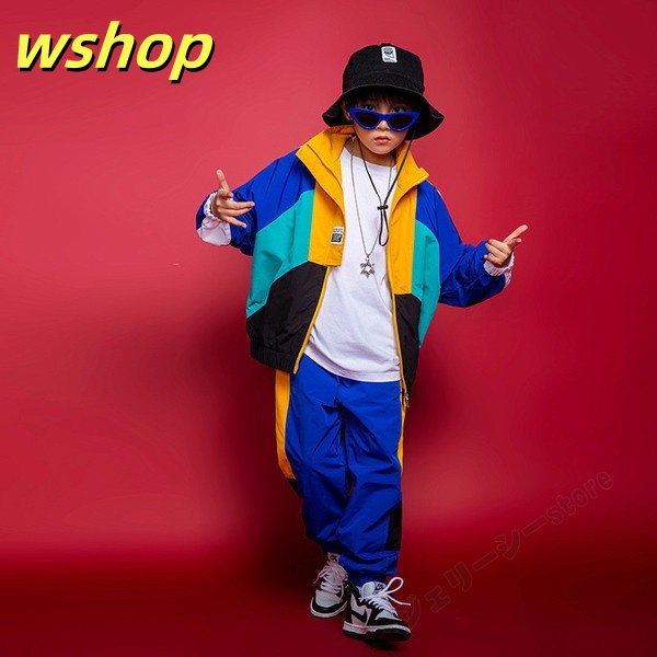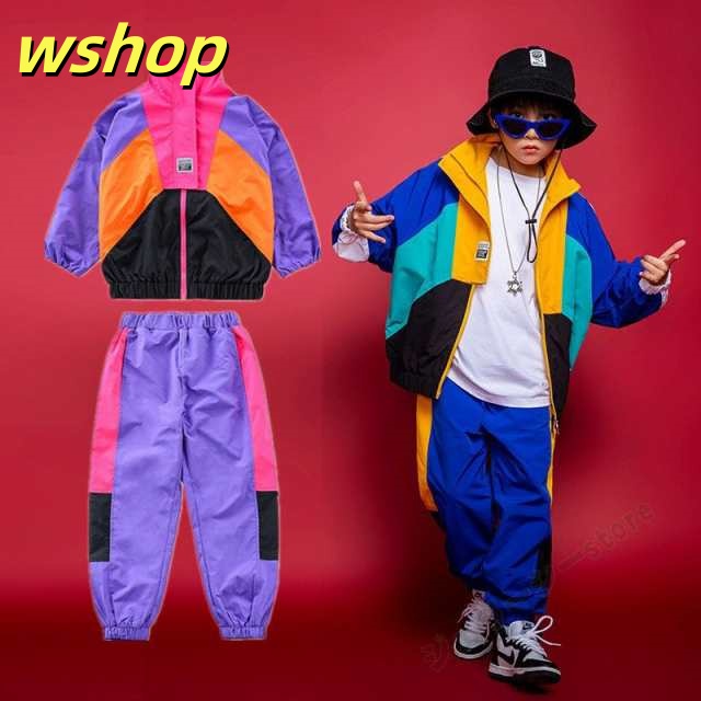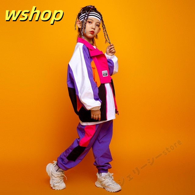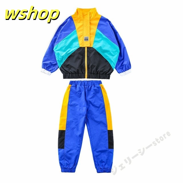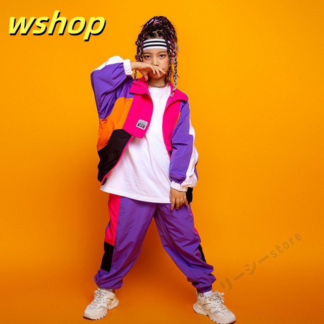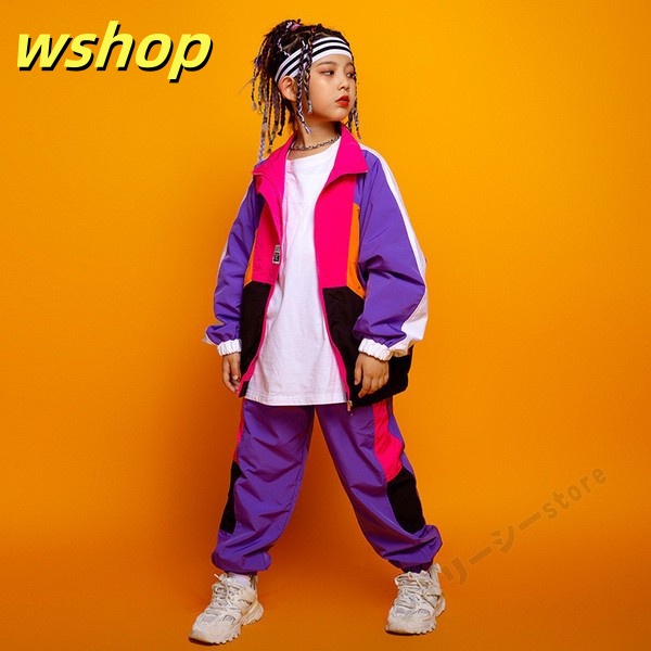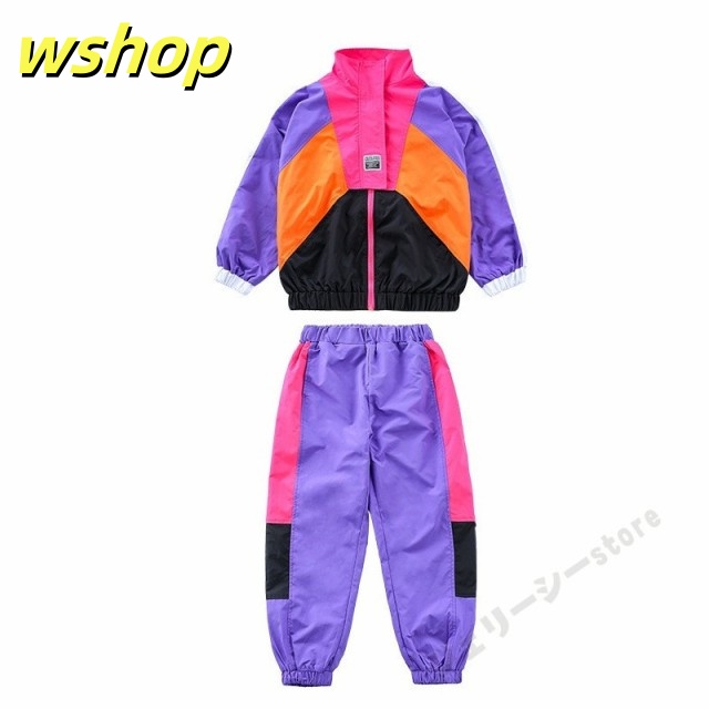 売れ筋アイテム ギフトにも最適 ロングパンツ 】キッズダンス衣装 【wshop 新登場 ダンス 派手 切り替え 衣装 長袖 売上急増中 パープル ヒップホップ ブルー ジャケット 在庫わずか 子供 セットアップ 送料無料実施中