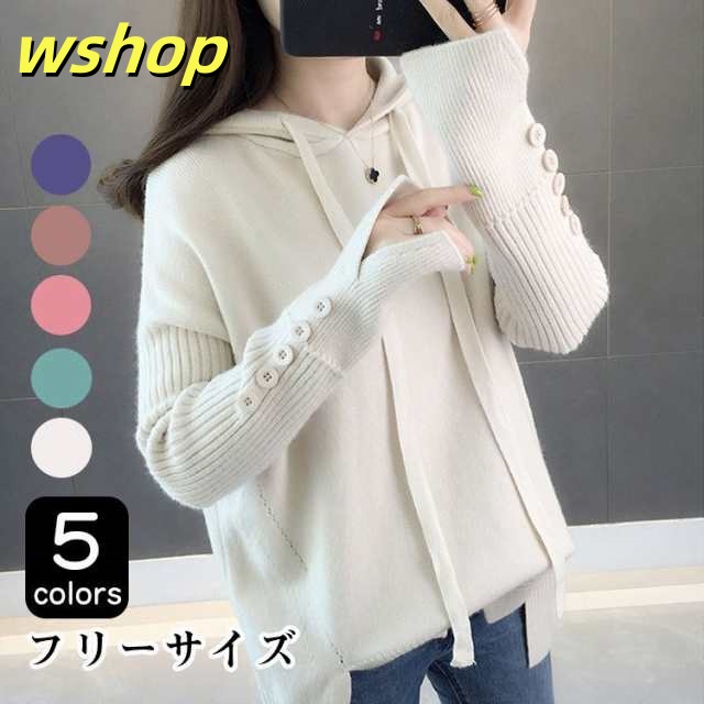 パーカー レディース ニット 秋冬 韓国風 プルオーバー パーカー 体型カバー 長袖 可愛い 大きいサイズ フード付き 20代 40代 30代 おしゃれ ピンク 赤 白 緑 紫