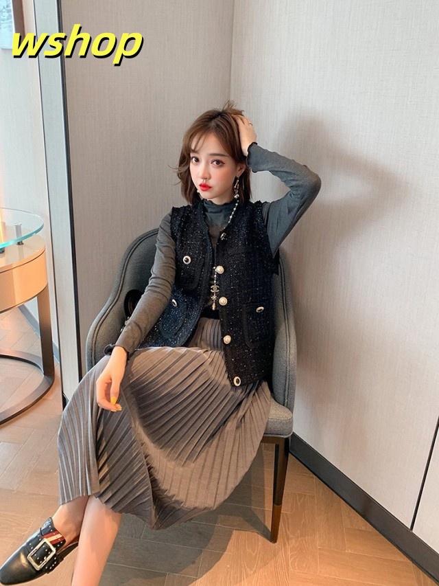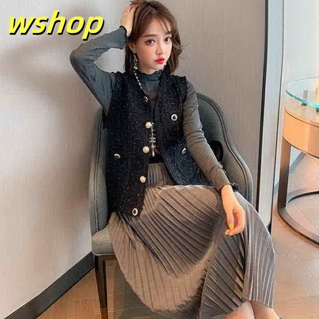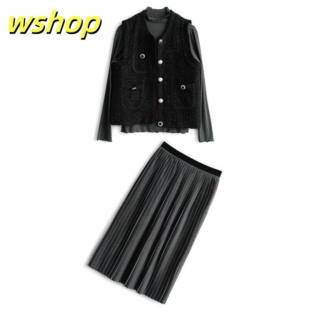 家中時間充実化 品質安心 ロング丈ニットプリーツスカート 】ニットセットアップ ツイードベストワンピース 40代 長袖ニットソー 秋冬セットアップ 韓国風 【wshop 在庫わずか 結婚式 人気急上昇 レディース 売上急増中 きれいめ 送料無料実施中