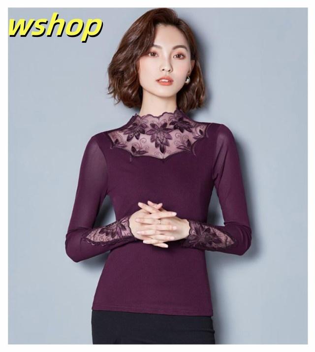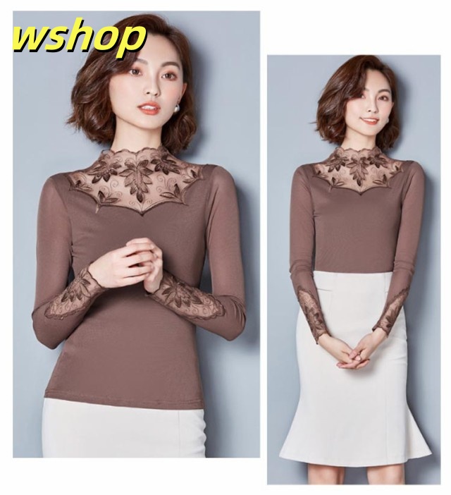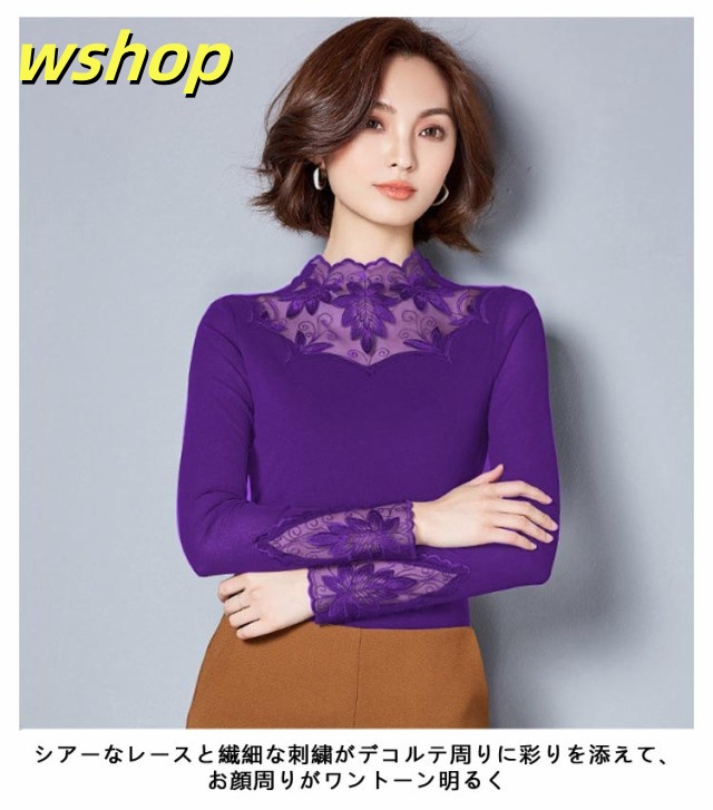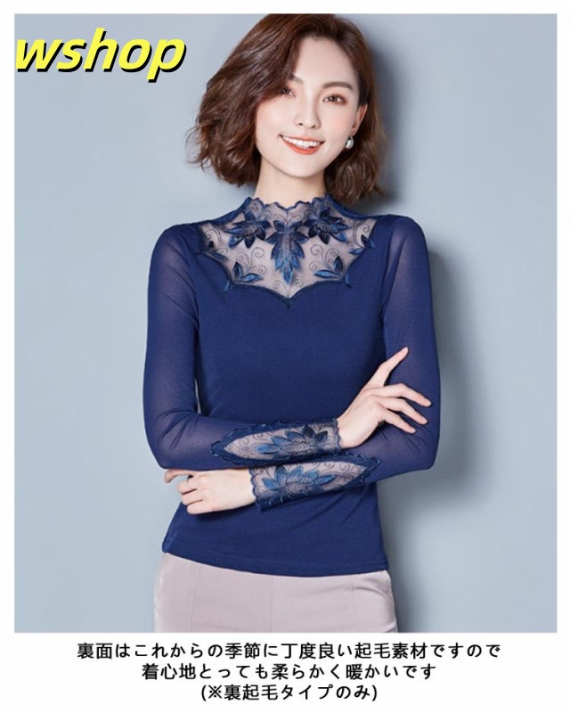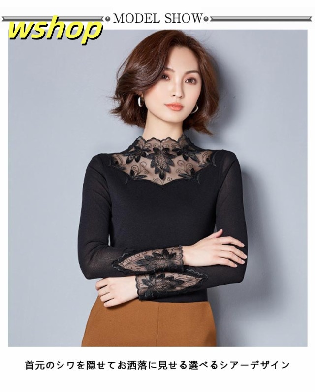 季節限定アイテム 品質安心 カットソー シワ隠し 送料無料 レイヤード レディース おしゃれ 重ね着 レース 売上急増中 】シアートップス 秋 インナー 【wshop きれいめ 暖か 新登場 レーストップス 春 長袖 裏地 首元 選べる2タイプ 数量限定入荷