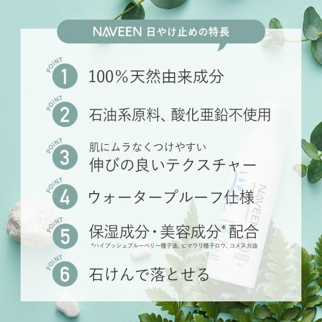NAVEEN(ナヴィーン) ミネラルサンスクリーン SPF50 PA++++ 30ml 日焼け止め ノンケミカル 子供 顔 化粧下地 COSMOS ORGANIC ウォータープルーフ 保湿 美容成分 ts1031