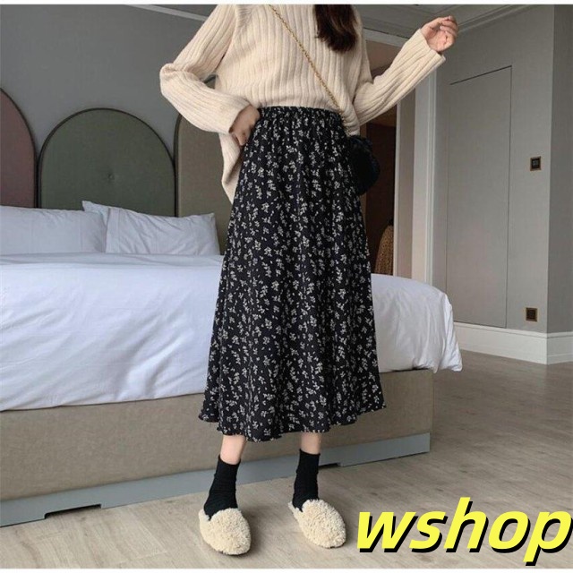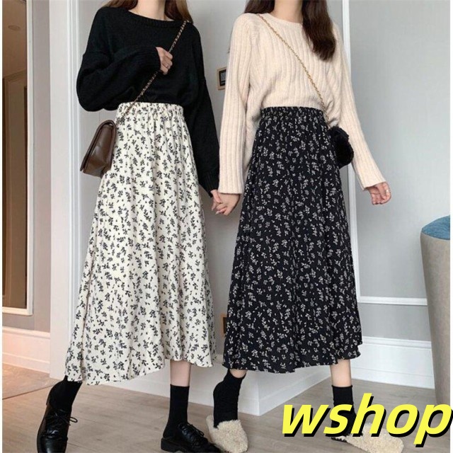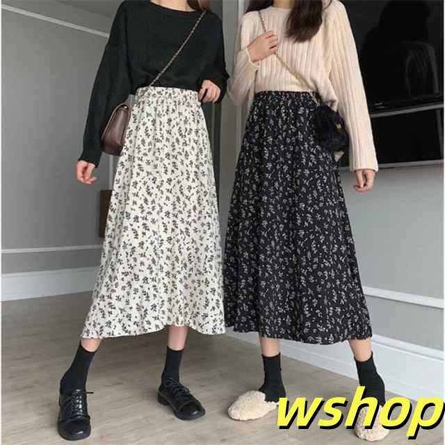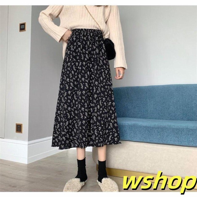 秋の新作特集 毎日使える便利品 【wshop 】スカートレディース花柄ロングスカートAライン体型カバーハイウエスト膝丈秋冬 今だけ 人気急上昇 売上急増中 即納対応中