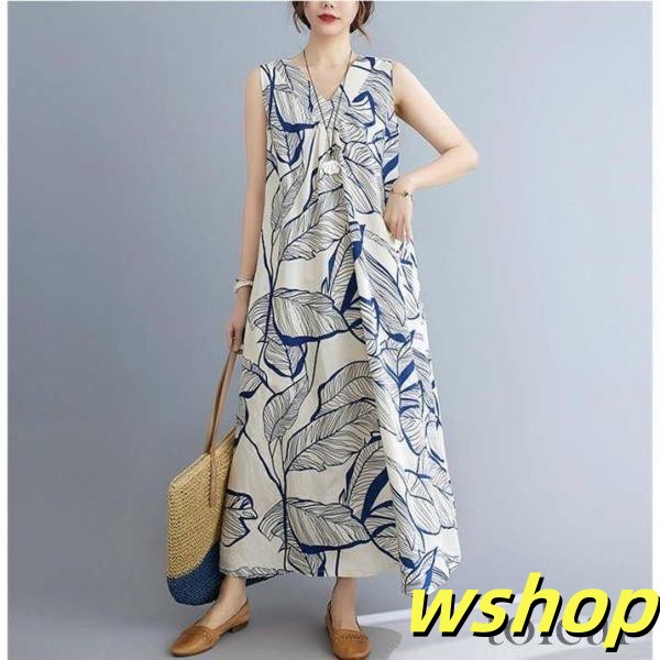 ワンピース マキシワンピース リゾートワンピ ノーカラー ノースリーブ ハワイアン 夏 ロングワンピース マキシワンピ マキシワンピ リゾート