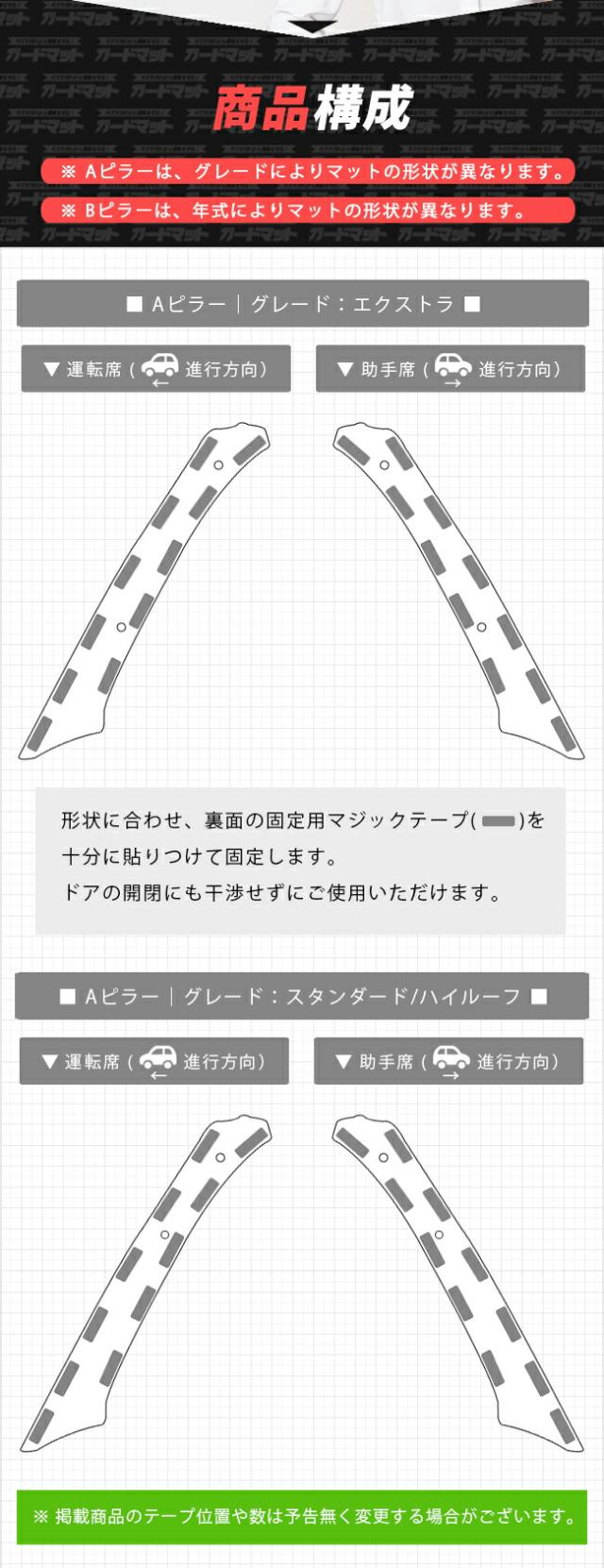 | 商品構成 | Aピラー用ガードマット 2枚 Bピラー用ガードマット 2枚 |