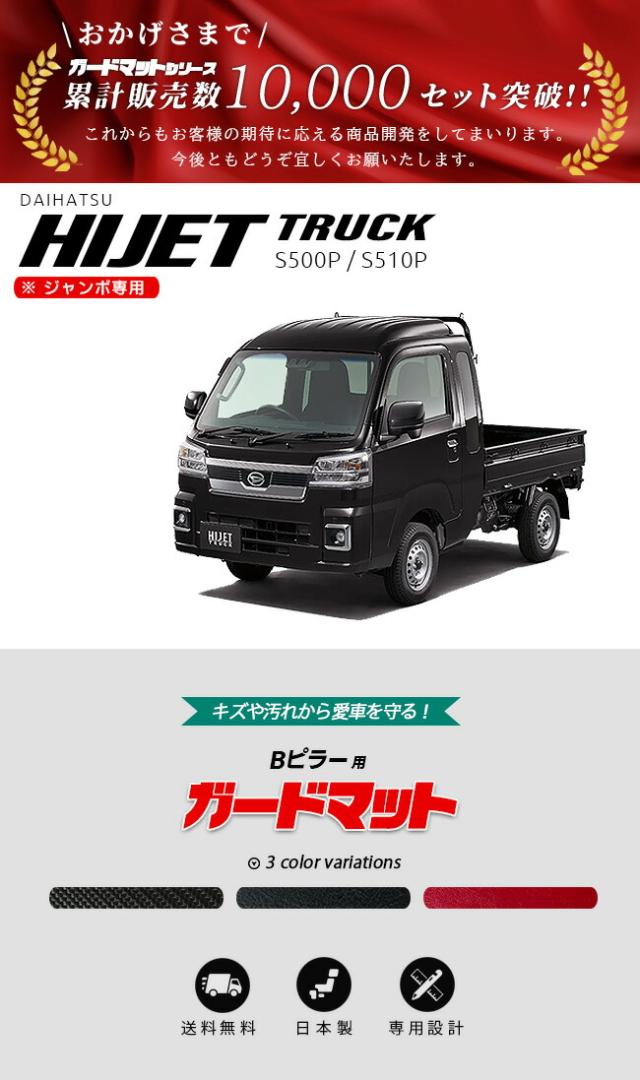 ダイハツ ハイゼットトラック ジャンボ 専用 ガードマット キックガード Bピラー用 2枚組 アクセサリー 内装 カスタム パーツ ドレスアップ キズ防止 マイナーチェンジ前後対応 フロアマット S510P S500P