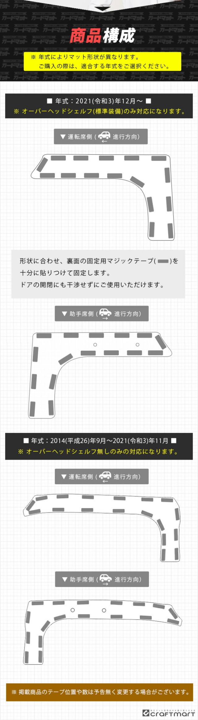 | 確認事項 | ・ガードマット未装着の車体形状を必ずご確認くださいませ。 ・納期につきましては弊社からのメールをご確認くださいませ。 |
