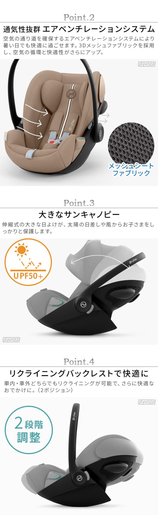 | 本製品は、交通事故などの場合にお子さまの傷害を軽減することを目的としており、必ずしも事故からお子さまを無傷で守るものではありません。 車種によってはお使いいただけない場合があります。cybex公式サイトで適合車種をご確認の上お買い求めください。 必ず保護者の方が取り付け、確認をしてください。 取扱説明書は必ずお読みになり、いつでも確認が出来るよう本体の取扱説明書収納ポケットに保管をしてください。 お子様の身長が60cmに達するまでは新生児インレイの着用が義務づけられています。身長61cmを超えたら、新生児インレイを取りはずして使用してください。 シートベルト固定の場合、引き出した際にベルトがロックしないNR式ベルトや、パッシブシート3点式以外のシートベルトでは固定できません。 |