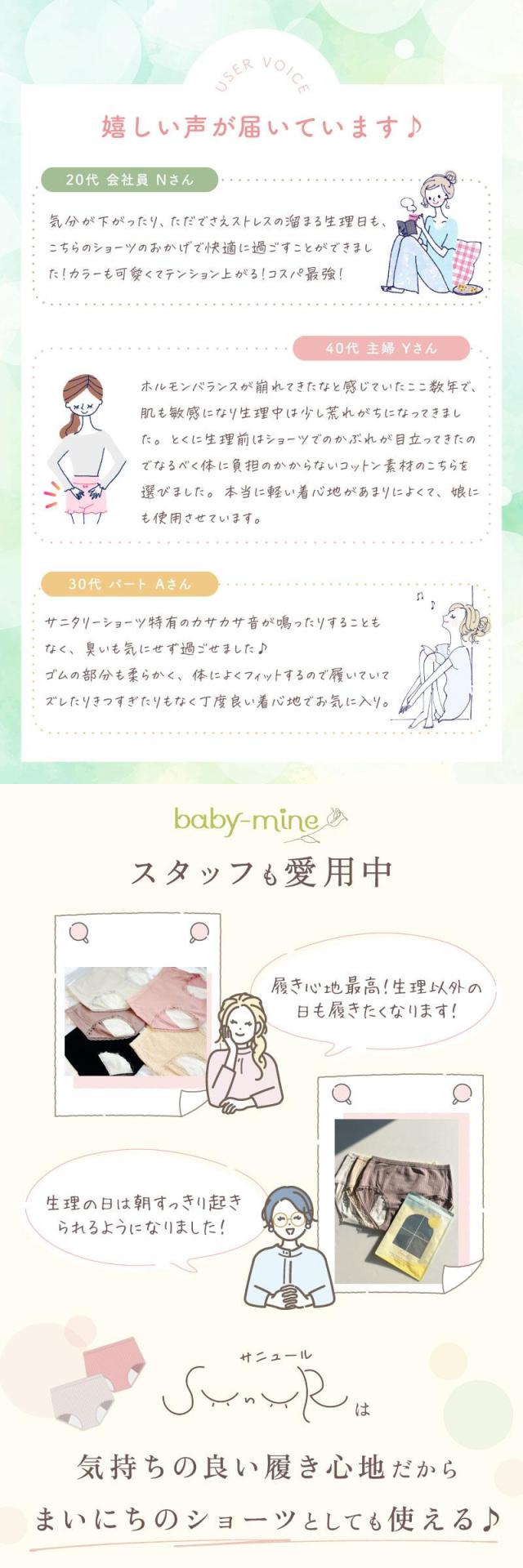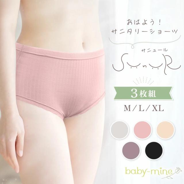 【3枚セット】サニタリーショーツ 綿 コットン 下着 レディース 敏感肌 パンツ サニタリー レース 夜用 おしゃれ 生理用 ショーツ 生理 消臭 防水 吸水 蒸れない 多い日 ジュニア おはようサニタリーショーツ sunur サニュール baby-mine ベイビーマイン