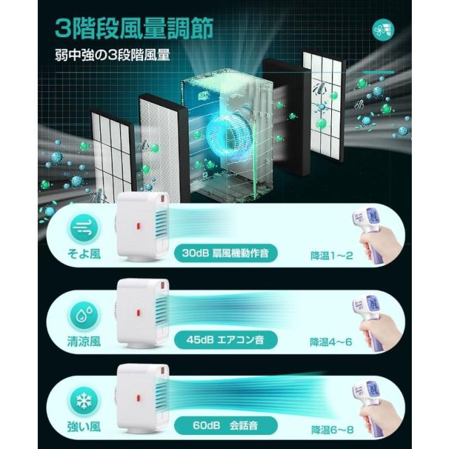 ★最大程度の消臭、殺菌、イオン生産及び清潔機能、常に新鮮な冷気を送風してくれる同時に、周りの空気をキレイになります。