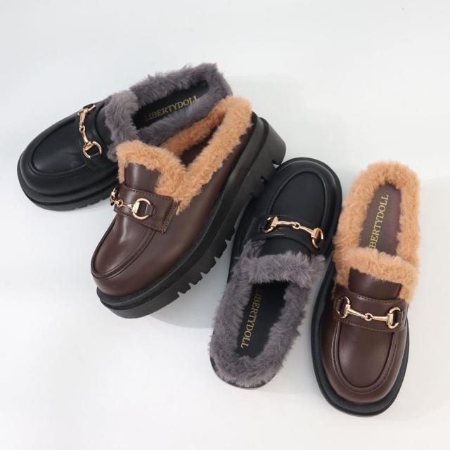 【LiBERTYDOLL リバティードール】のファー付きビットデザイン厚底ミュール。