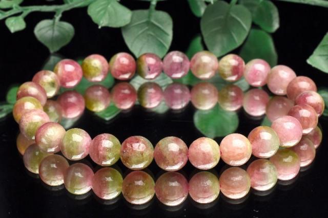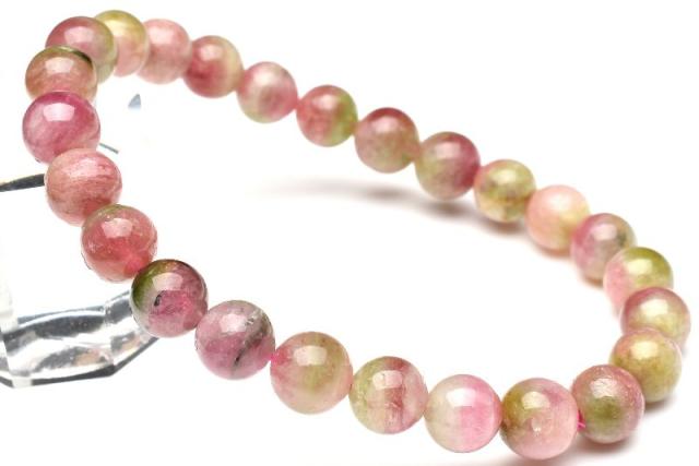 【1点物】AA☆透過性あり ウォーターメロントルマリン 7.5mm ブレスレット 健康運【ネコポス送料無料】_U5103