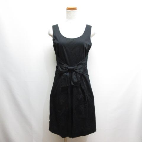 【中古】ケイトスペード KATE SPADE ノースリーブ リボン ワンピース ドレス 0 黒 ブラック コットン 裏地付き