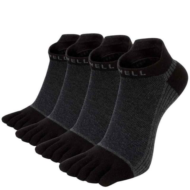 [VWELL] 五本指ソックス メンズ 五本指靴下 吸汗速乾 くるぶしソックス 5本指ソックス カジュアル 抗菌防臭 通気 四季適用 丈夫な靴下 4足セット 25~27cm (25.0-27.0 cm, ブラック)