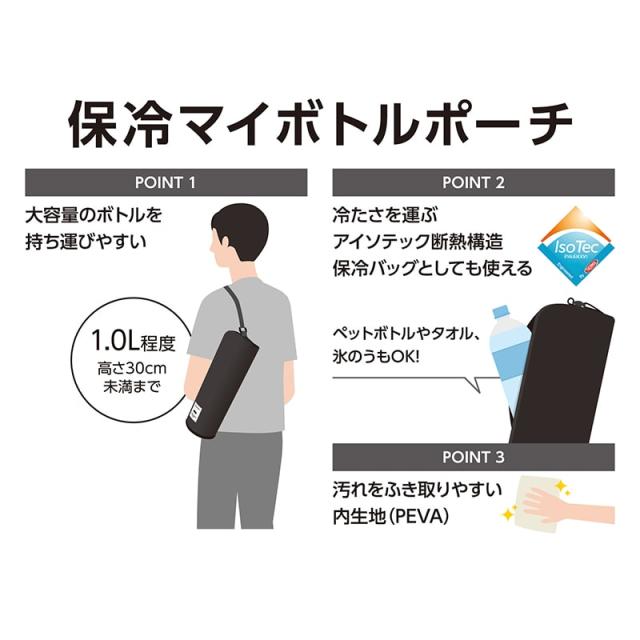●1L〜1.5Lの保冷&保温ボトルを持ち運べる●「アイソテック」断熱構造。保冷バッグとしても使える●汚れをふき取りやすい内生地(PEVA)●手洗い可