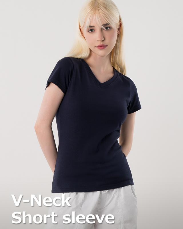 このコットンスパンVネック半袖Tシャツは、コットンスパン素材を使用しており、