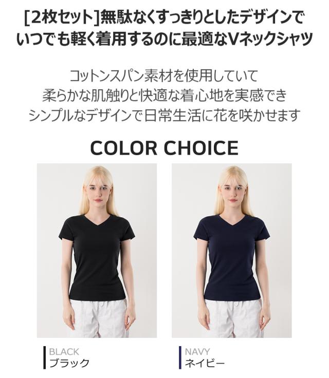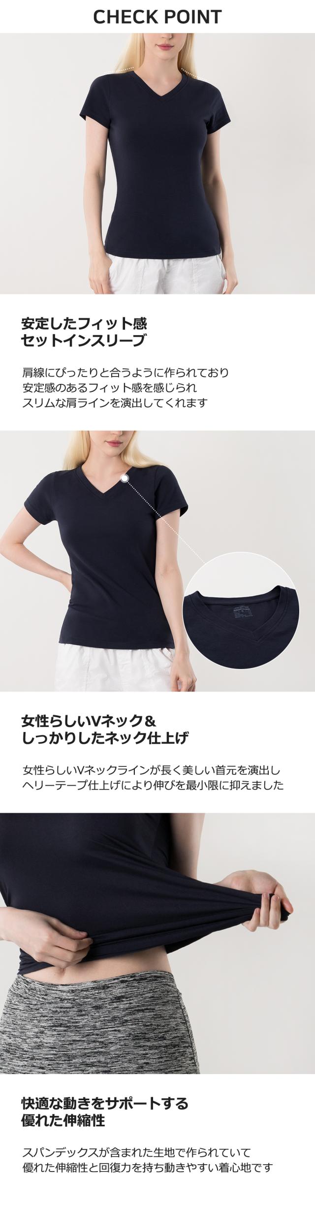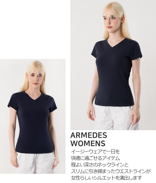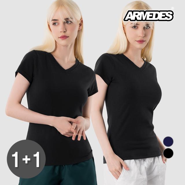 2枚セット 送料無料 ARMEDES アルメデス Tシャツ 形状記憶 伸縮性 通気性 Vネック 半袖 リラックスフィット コットン スパン 日常 トレーニングウェア ランニング フィットネス ヨガ レディース S-XL ブラック/ネイビー オールシーズン AR233