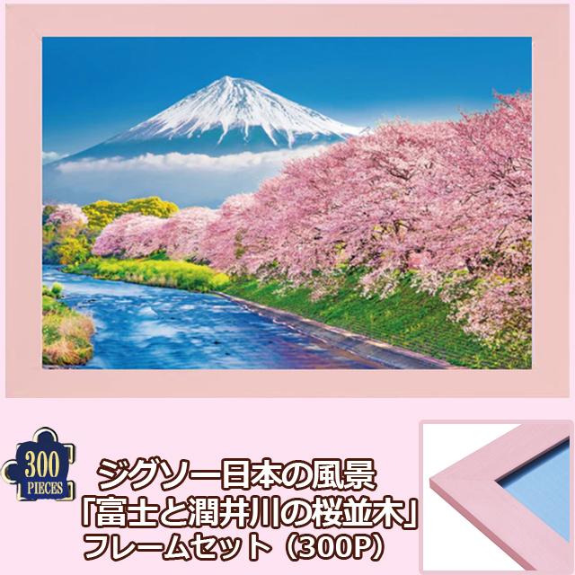 ジグソー日本の風景「富士と潤井川の桜並木」フレームセット(300P)パズル パネルセット300ピースジグソー 38x26cm 桜風景 お花見 自宅遊び 静岡県潤井川桜