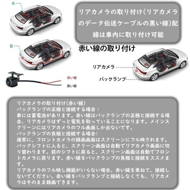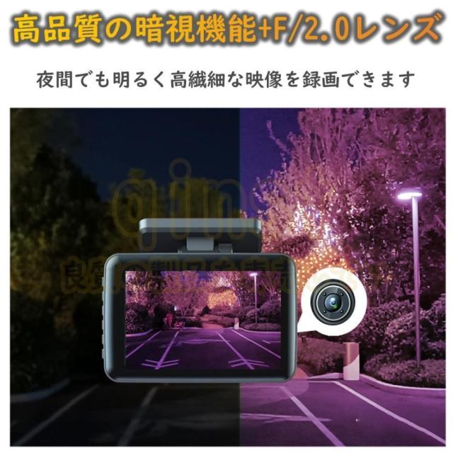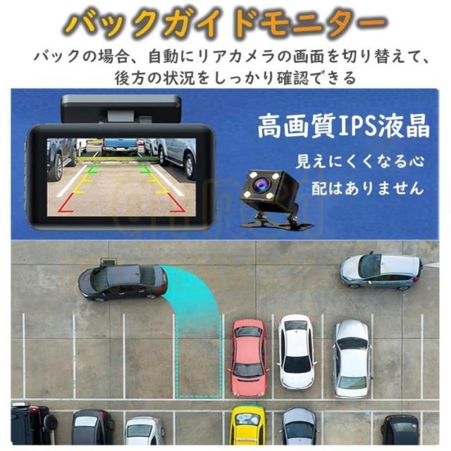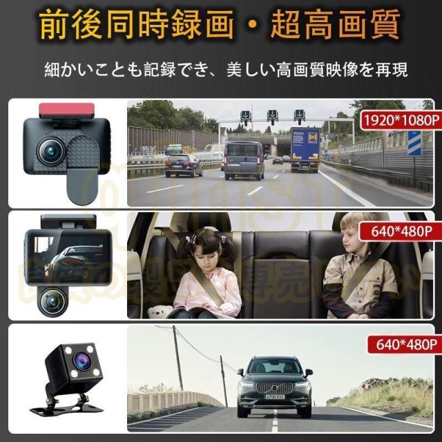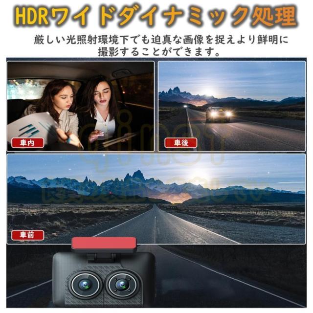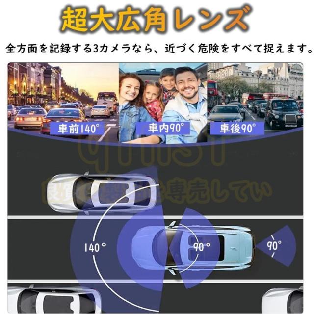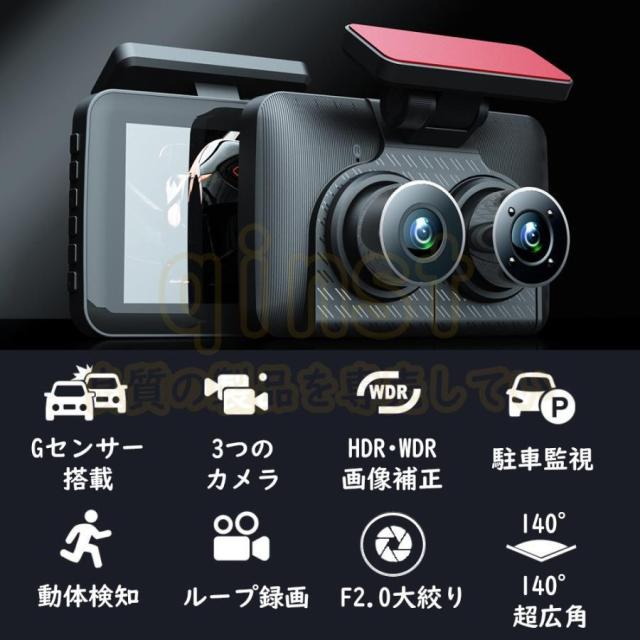 ドライブレコーダー 前後3カメラ 同時録画 1080P高画質 4.0インチHDR画像補正 140度 超広角 Gセンサー ループ録画音声記録 駐車監視対応 ノイズ対策済