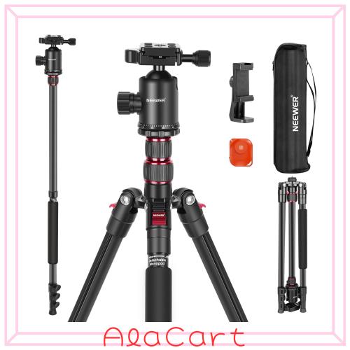 ◆商品名:NEEWER カメラ三脚一脚 197cm DSLRカメラ用 リモコン/スマホホルダー/360°ボールヘッド/2軸センターポール/Arca型QRプレート/バッグ付き