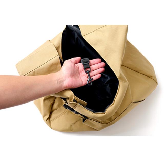 正面のファスナーを使って、入口を大きく広げることが可能。