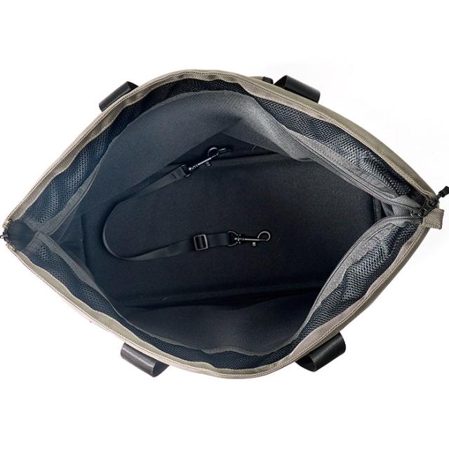上部のファスナーを閉めれば公共交通機関でお使いいただけます。