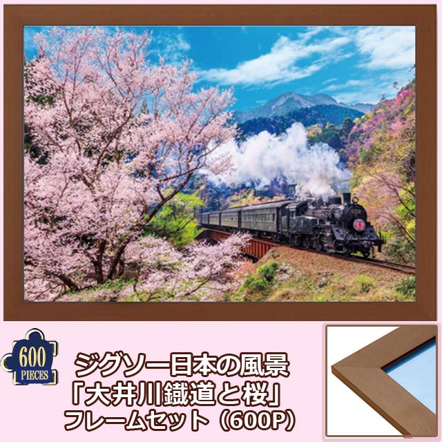 ジグソー日本の風景「 大井川鐡道と桜」 フレームセット(600P)パズル パネルセット 600ピースジグソー 53x38cm 桜風景 自宅遊び SLと桜 桜の名所柄ジグソー