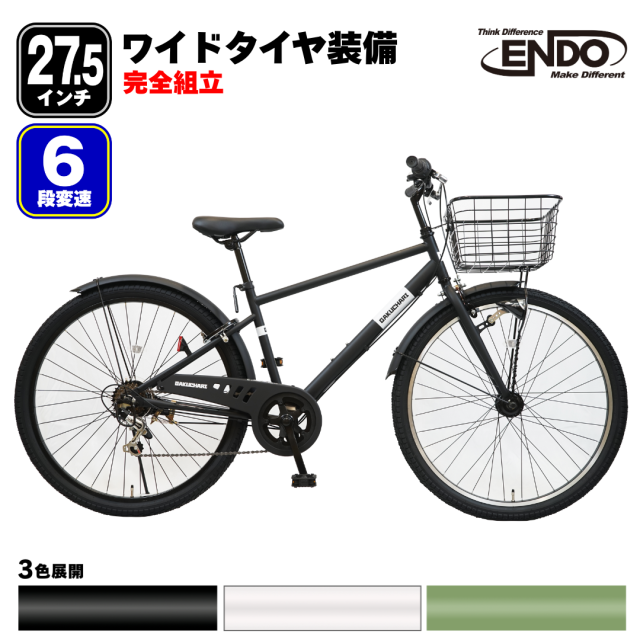 【置き配商品】 自転車 クロスバイク 27.5インチ 27インチ オートライト シマノ 変速 シティサイクル ワイドタイヤ ガクチャリ 自転車本舗 エンドウ商事 通学 完全組立 送料無料