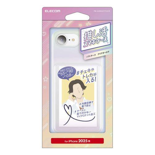 エレコム iPhone 16e ケース ソフト 衝撃吸収 推シ活 チェキ収納 クリアオーロラ(PM-A25SUCTFACR) メーカー在庫品