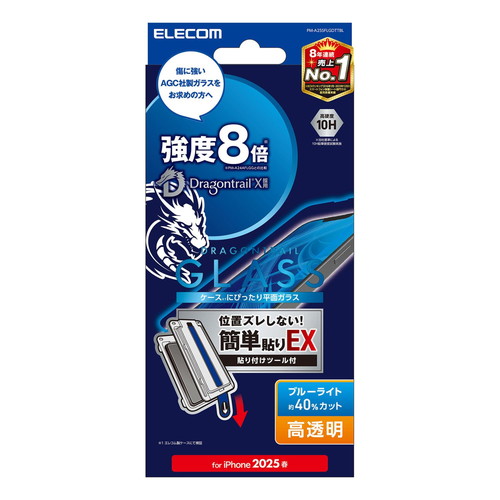 エレコム iPhone 16e ガラスフィルム 高透明 ブルーライトカット 簡単貼リ付ケ(PM-A25SFLGDTTBL) メーカー在庫品
