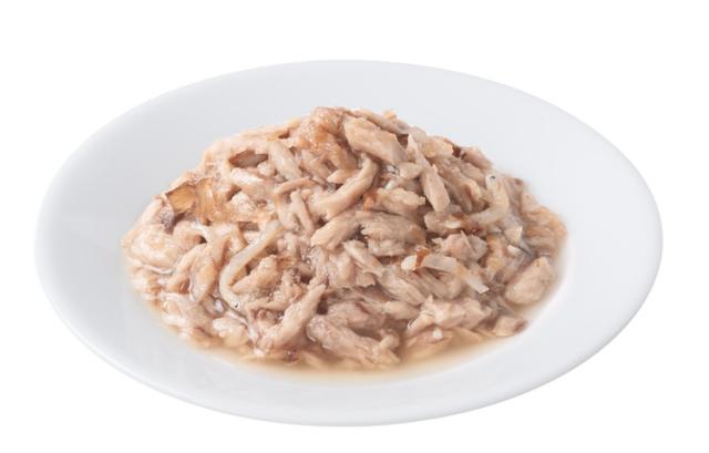 まぐろベースにしらす、かつお節をトッピング、かつお・焼きあご・昆布エキスを配合したレンジ対応パウチ品