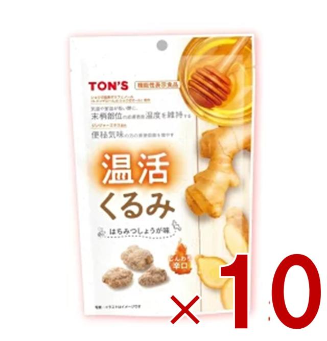東洋ナッツ 温活くるみ はちみつしょうが味 64g TON’S 冷え性 くるみ しょうが はちみつ ジンジャーエキス 便秘 辛口 10個