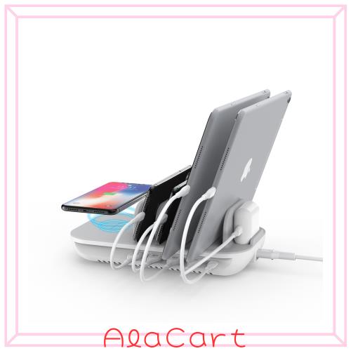 PD対応/ワイヤレス充電器/4ポート USB-A 、首佩 70W 5ポート充電ステーション 15Wワイヤレス充電パッド付き iPad Pro Gen2、Phone Xs/Max
