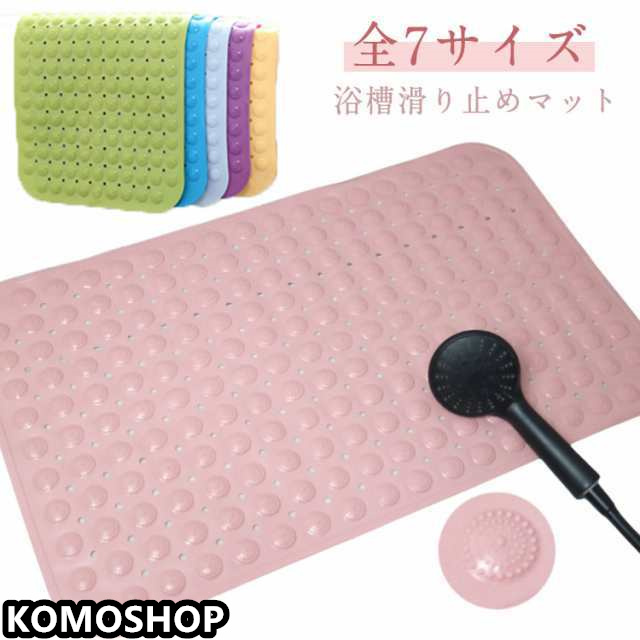 | 表面はデコボコ加工で転倒を防止します。 マットの裏には吸盤がついているため床にしっかり固定されます。 滑りやすい浴槽の底にこのマットを敷くことで転倒を防止します。 浴槽内のみでなく、洗い場でも使用が可能でより安全に! 突起が適度の刺激で足裏やお尻に心地よさを演出 たくさんの丸穴があり水きれが良くすばやく乾きます。 軽量・柔らかなPVC素材、折りたたみや、丸めて保管できるので収納に便利です。 もしくは壁に吸着して収納が可能で、省スペースです。 高齢 介護 ベビー 子供 妊娠中の方 様々な方にご愛用頂いております。 バスタブのサイズに合わせてはさみでカットが可能です。 | |