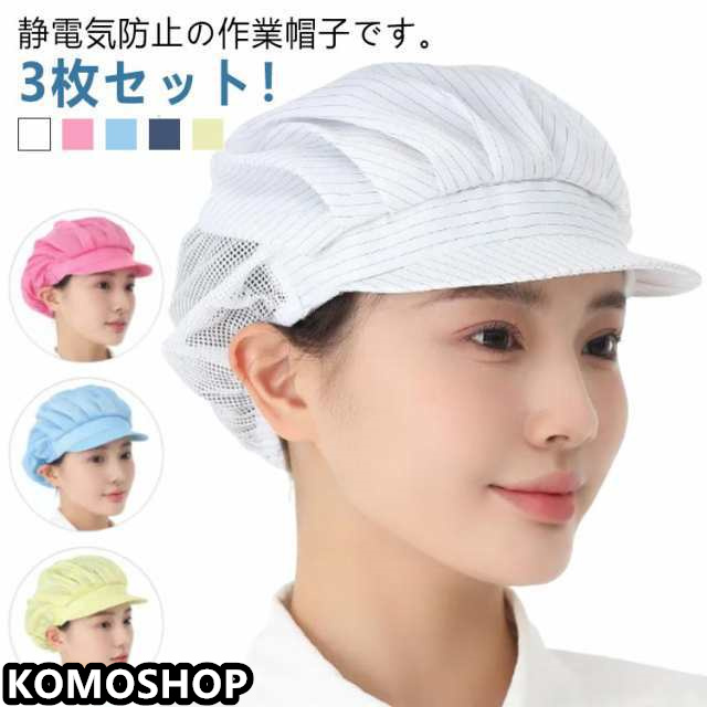 衛生帽子 ワークキャップ 3枚セット つば付き 通気性 洗える 静電気防止 業務用 帽子 衛生キャップ 作業用 ハーフネット キッチン 男女兼用 カフェ 厨房 食品工場 工場 給食 調理用 給食帽子