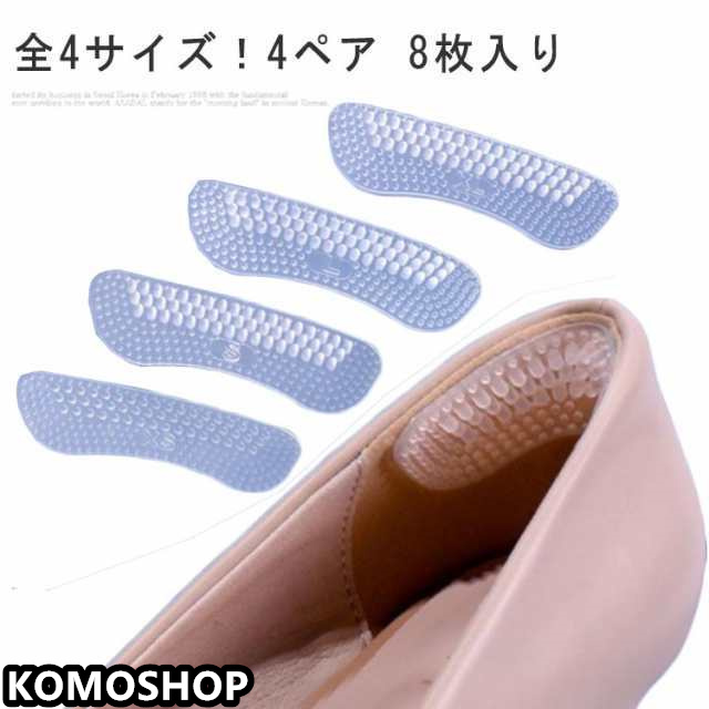 | 全4サイズ!4ペア 8枚入り ズレ防止・痛み防止・クリアなかかとパッド。 靴擦れでかかとが痛い、サイズが合わなくパカパカするなど悩みを解消するインソールかかとパッド。 靴のかかとに貼るだけで、ソフトなクッションがかかとをグリップして靴を脱げにくくし、 歩行を楽にする靴ずれ、うおのめ防止パッドです。 ソフトであたりの良いシリコン素材を使用し、摩擦によっておこるかかとへの負担を軽減します。特にかかとが抜けやすいパンプス、ビジネスシューズに。 強力粘着シール付きで程よい厚みのクッション入り!かかとのカーブにフィットする柔軟性。 凸凹のあるデザイン、滑り止め効果抜群で、ストッキングを履いても脱げにくく、快適な歩行をサポート。 | |