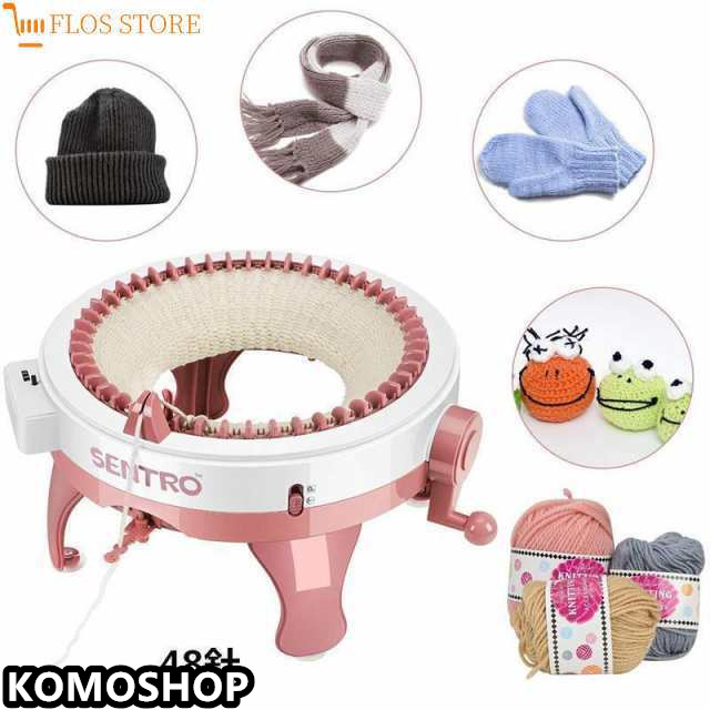 【使いやすい】 48針編み機、ローカウンター、フラット/チューブ編みスイッチキー。1つのキーで切り替えることができます。ハンドルを回して、数秒で平らな針または丸い針を作成します。糸をスピンドルにねじ込み、クランクを回して自分の傑作を編むだけです。