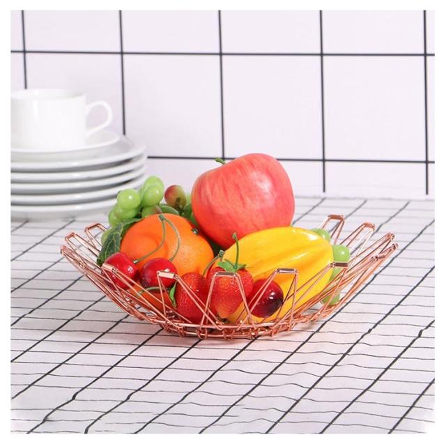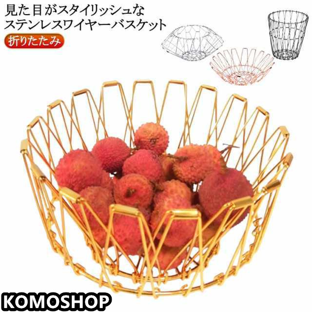 おしゃれ 丸型 フルーツボウル 折りたたみ ワイヤーバスケット ワイヤーカゴ 雑貨 フルーツバスケット おしゃれ ワイヤーバスケット フルーツ皿 北欧 フルーツボール お菓子入れ 変形 黒 金 銀 鍋敷き 北欧