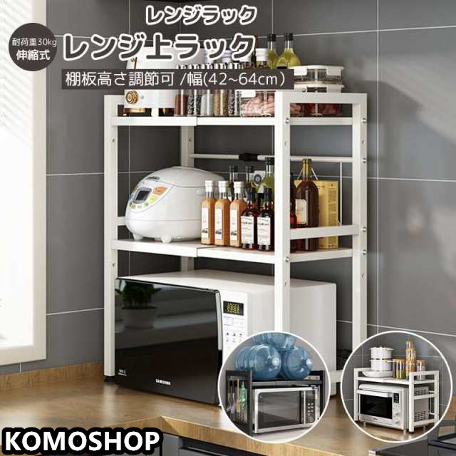 レンジ上ラック レンジラック 伸縮式 2段式 電子レンジラック 棚板高さ調節可 オーブンレンジラック キッチン収納ラック おしゃれ 耐荷重30kg