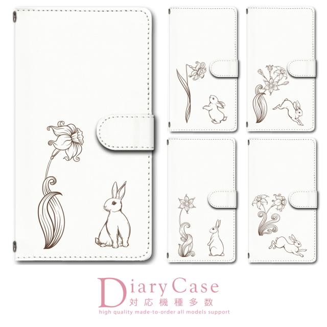スマホケース 手帳型 全機種対応 ケース iPhone17Pro iPhoneAir iPhone17 ProMax iPhone16e iPhone16 16pro iphone15 se googlepixel7a pixel8a Galaxy s24 a53 AQUOS wish4 sense8 Sense7 xperia 10 vi iv v ファンシー ウサギ 兎 イラスト シンプル