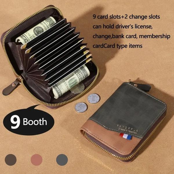 男性と女性のための多機能合成皮革カードバッグ,大容量,多機能,ジッパー,紙幣クリップ