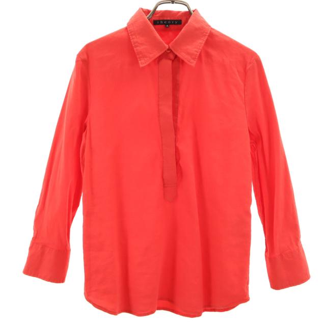 セオリー 日本製 リネンブレンド 7分袖 プルオーバー シャツ 4 朱色 theory レディース