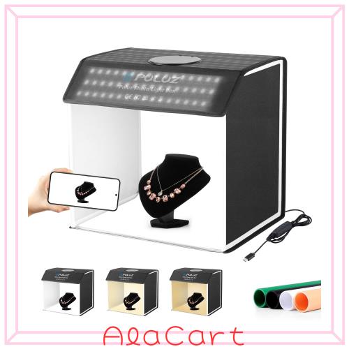 PULUZ 撮影ボックス 42×42×32cm 撮影ブース 折り畳み 物撮りセット 320個LEDビーズ/超高輝度/3色温度/無段階調光/4色PVC背景/ディ