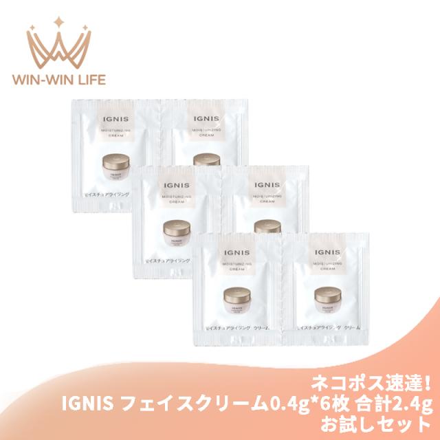 ネコポス速達!イグニス モイスチュアライジング クリーム 0.4g*6枚 合計2.4g フェイスクリーム お試しセット サシェサンプル トラベルサイズ 濃密 うるおい 保湿 ハリ 乾燥・肌荒れ防止 IGNIS ignis