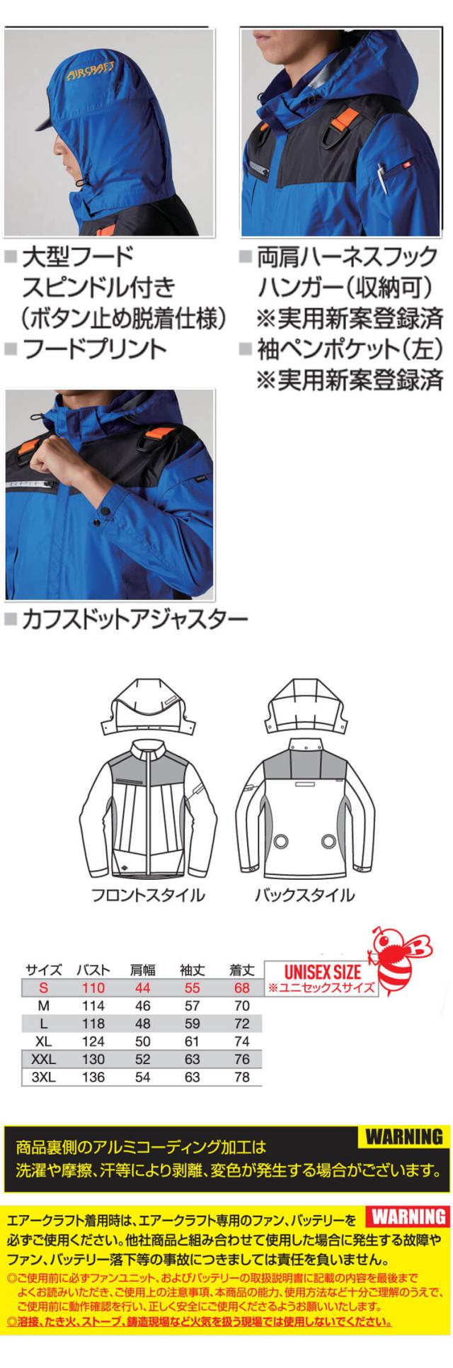 [旧型 アウトレット価格]バートル BURTLE エアークラフトフーディ長袖ジャケット(ファンなし) AC1191 AIRCRAFT