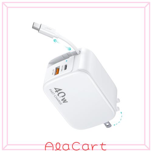 ◆商品名:3-in-1自動巻き取り式 iPhone16 充電器 合計40W PD 急速充電器 引き込み式壁掛け充電器 折りたたみ式プラグ Type-C 充電器 iPhone iPad A